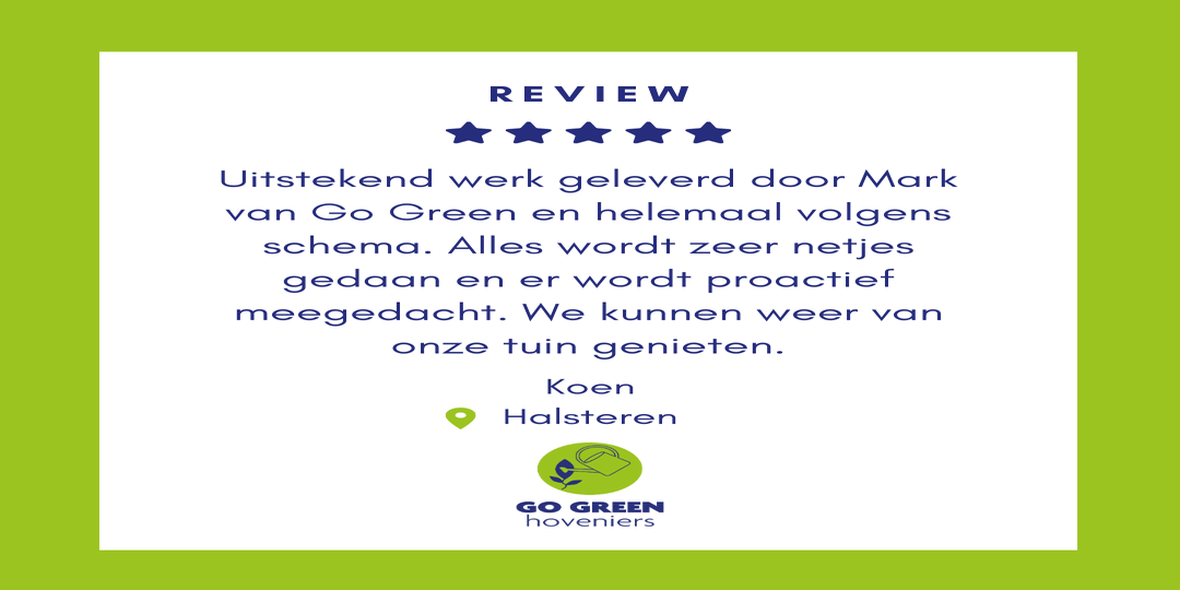 Van Strien Hoveniers uit Fijnaart neemt per 19 februari 2024 Go Green Hoveniers over. Met een gedeelde passie voor het realiseren van kwalitatief hoogstaande tuinen met oog voor detail en duurzaamheid kunnen de klanten van Go Green Hoveniers van van Strien Hoveniers minimaal dezelfde kwaliteit en service verwachten. Mark en Paul gaan mee over naar van Strien. Mocht u een bestaande Go Green Hoveniers klant zijn kunt u op verzoek de vertrouwde gezichten van Go Green Hoveniers uw tuin blijven laten onderhouden.