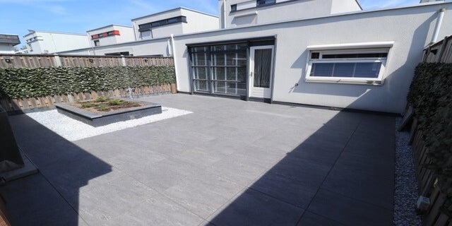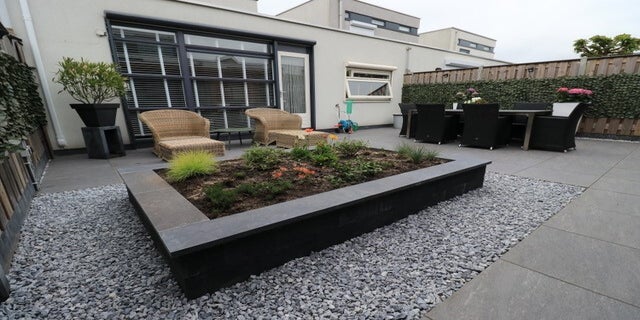 Een belangrijk element in deze tuin is de verhoogde plantenbak in het midden. Deze biedt niet alleen een visueel aantrekkelijk element, maar is ook praktisch in gebruik. Met zijn verhoogde positie is de plantenbak gemakkelijk toegankelijk en zorgt het voor variatie in hoogte. Dit is een voorbeeld van hoe we functionaliteit combineren met het maken van een mooie tuin.